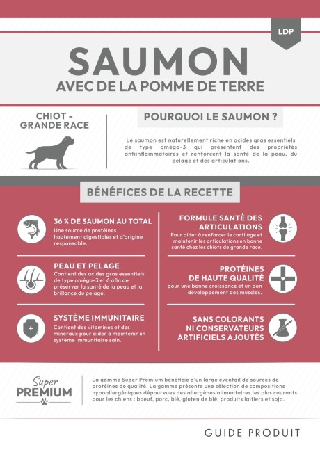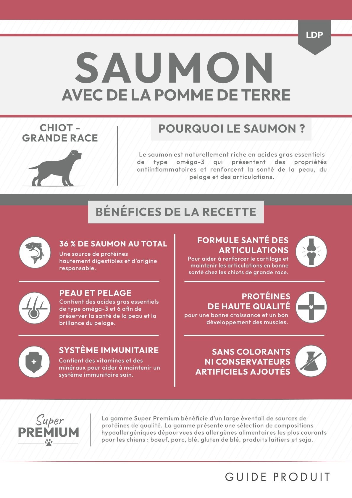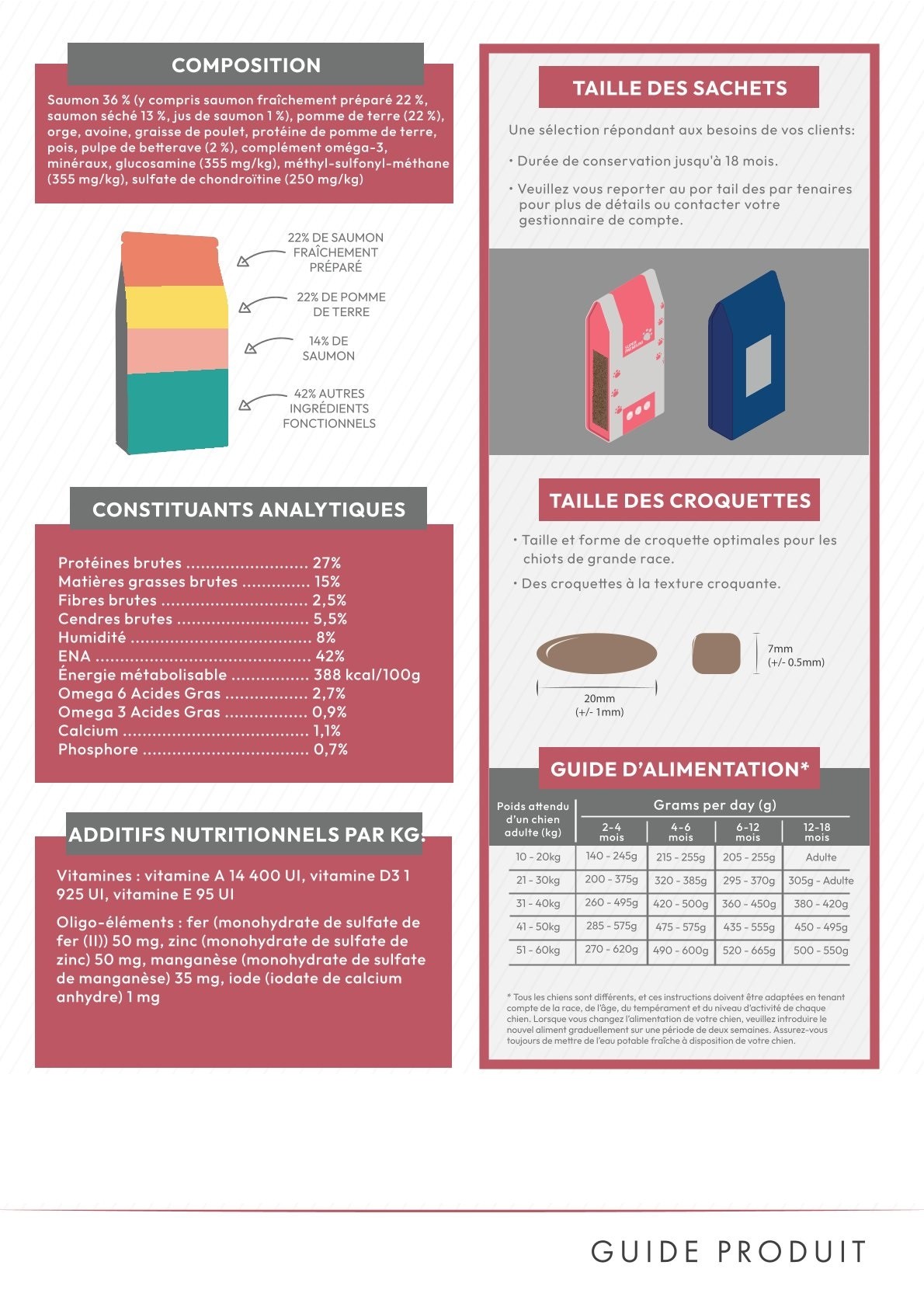 Croquettes Chiot Grand Race Saumon avec de la pomme de terre.
